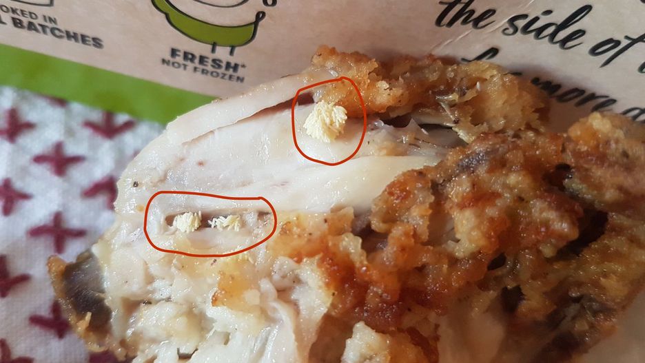 Klientka KFC udostępniła na Twitterze zdjęcie kurczaka z KFC, w środku którego odkryła najprawdopodobniej gniazdo robaków.
