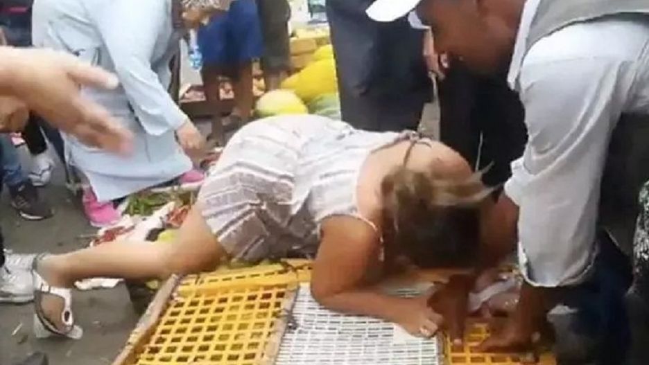 Starała się własnymi rękami zniszczyć jedną z klatek. Sprzedawcy nie odpychali ani nie dotykali kobiety, ale przytrzymywali klatki, uniemożliwiając ich otwarcie. Wielu wyglądało na bardzo rozbawionych całą awanturą.