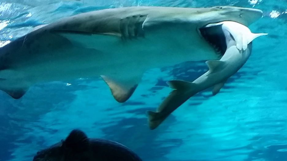 *W akwarium żyją 42 rekiny. * Obiekt istnieje od 2000 r. i do tej pory nie zdarzały się przypadki podobnych ataków. Nie wiadomo więc, co sprawiło, że samica zaatakowała mniejszego "kolegę".