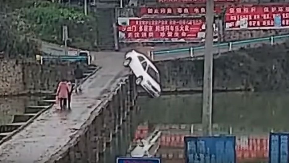 Do zdarzenia doszło na Laoping Bridge w prowincji Kuejczou w Chinach. Na nagraniu, które trafiło do sieci widać samochód skręcający na most, po którym spacerują 3 osoby. Po chwili auto wpada do rzeki.