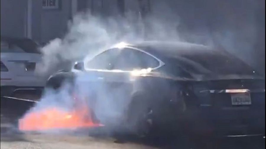 Tesla zapłonęła bez żadnego powodu. Kierowca w pierwszej chwili nie zauważył, co się dzieje z jego autem, dopiero przechodnie zwrócili mu na to uwagę. Mężczyzna wyłączył się z ruchu i uciekł z płonącego pojazdu.