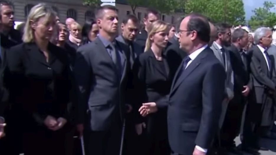 Francuski policjant nie chciał podać ręki François Hollande’owi. BBC informuje, że do incydentu doszło podczas zorganizowanej w Wersalu uroczystości upamiętniającej dwoje policjantów zabitych przez islamskiego fanatyka. Jeden z funkcjonariuszy zupełnie zignorował prezydenta Francji, gdy ten po kolei witał się z przedstawicielami policji. W podobny sposób potraktował premiera Manuela Vallsa. Gest Francuza wywołał w całym kraju niemały skandal, a wideo przedstawiające zajście zyskało tysiące udostępnień na całym świecie.
