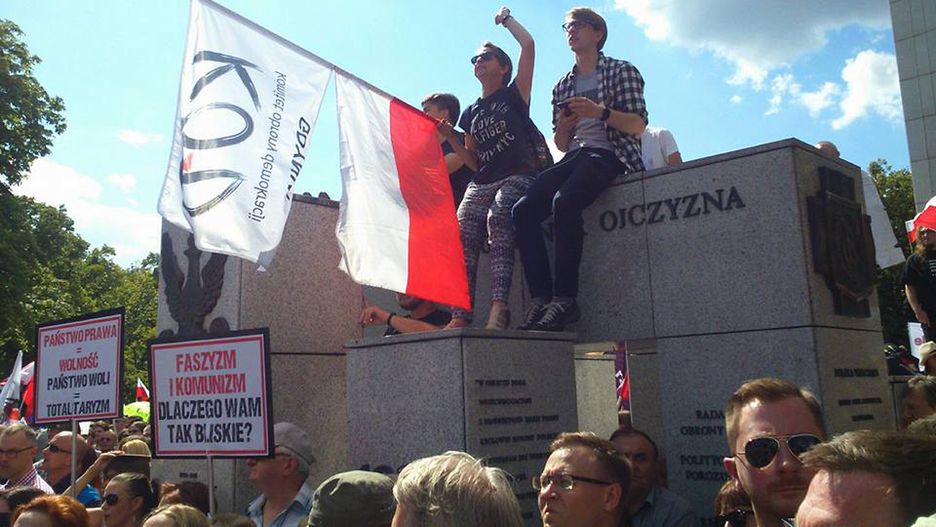W sieci pojawiło się zdjęcie, na którym widać troje uczestników pikiety w obronie sądów w Polsce. Siedzieli na Pomniku Armii Krajowej i Polskiego Państwa Podziemnego.
