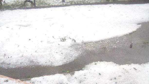 Bynajmniej jednak nie jest to "puch". W słoweńskiej miejscowości spadł po prostu grad. Bryłki lodu dobrze widać na innych zdjęciach. Na jednym z nich ktoś trzyma sporej wielkości bryłki w dłoniach.