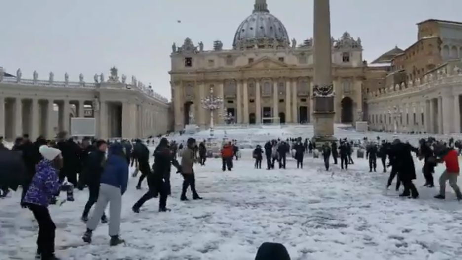 *Mieszkańcy Rzymu widzieli śnieg pierwszy raz od 6 lat. *Przez 10 godzin opadów utworzyła się 10 centymetrowa warstwa puchu. Dla duchownych była to świetna okazja do zabawy. Zorganizowali wielką bitwę na śnieżki.