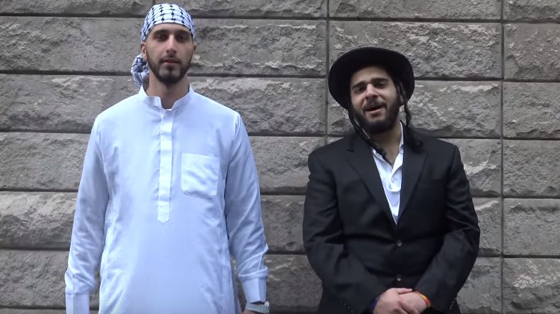 MoeLaddin to duet uwielbiający społeczne eksperymenty. Wcześniej para youtuberów zajmowała się między innymi kwestią żyjących w przestrzeni miejskiej niewidomych. Tym razem jednak Moe i Al postanowili sprawdzić, jak bardzo szokujący jest widok Żyda i Muzułmanina idących ramię w ramię. W tym celu jeden z nich ubrał się w tradycyjny żydowski strój, nie zapominając o koszuli z frędzlami i kapeluszu z szerokim rondem. Drugi wdział arabską galabiję, a na głowę założył chustę.
