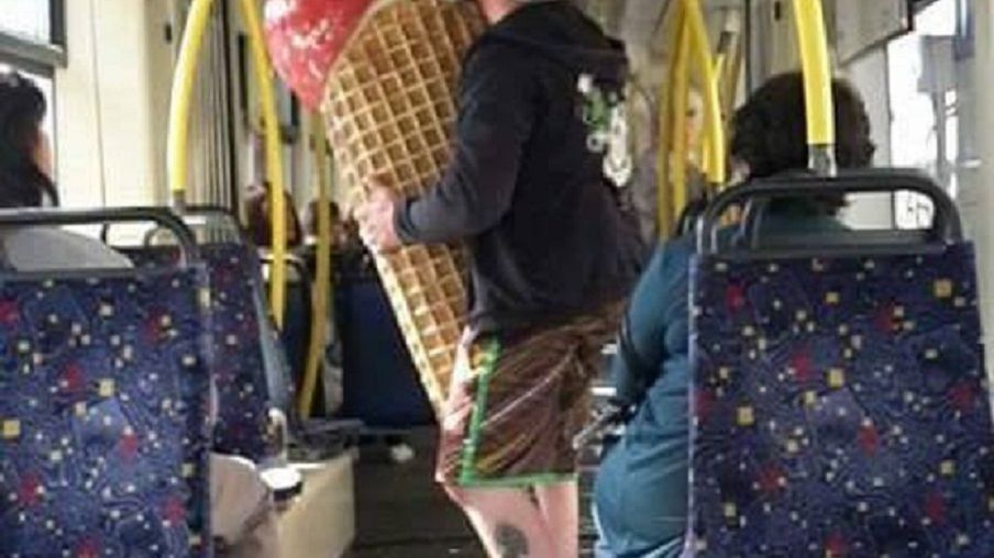 24-latek ukradł gigantycznego plastikowego loda w wafelku i jak gdyby nigdy nic wsiadł z nim do tramwaju.