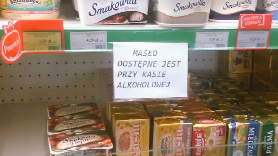 Stało się. Masło jak towar ekskluzywny, dostępne przy kasie alkoholowej