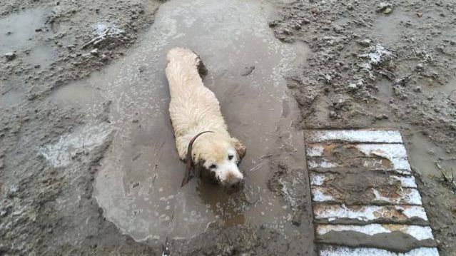 Straż miejska uratowała labradora. Wyziębiony tonął w błotnistej mazi