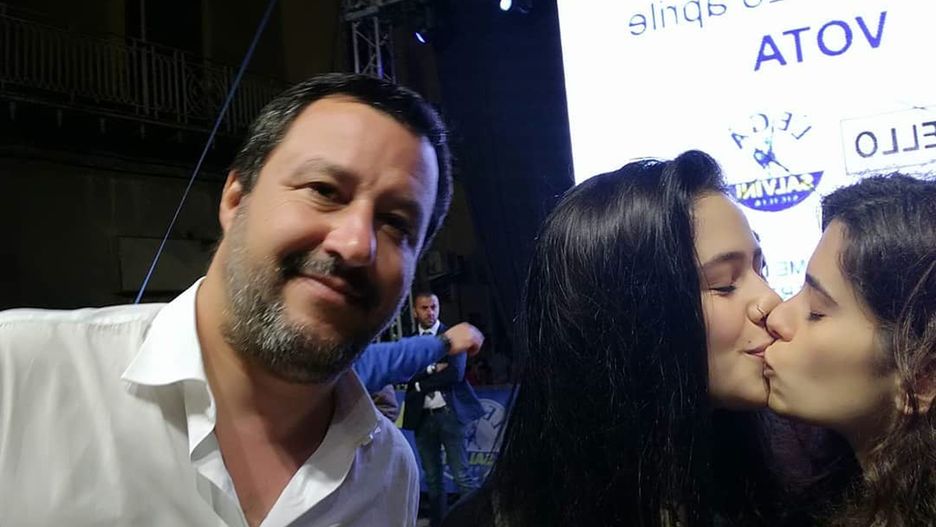 Zdjęcie zostało wykonane na wiecu wyborczym w mieście Caltanissetta na Sycylii. Matteo Salvini robił zdjęcia ze zwolennikami, gdy podeszły do niego dwie studentki. Zrobiły zdjęcie z politykiem, na którym widać, jak się całują.