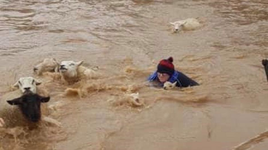 Sztorm Dennis. Farmerka wskoczyła do wód powodziowych, żeby uratować zwierzęta