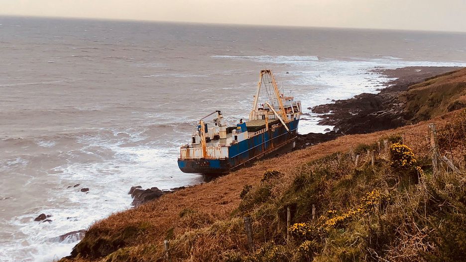 Sztorm Dennis zepchnał statek widmo na irlandzkie wybrzeże