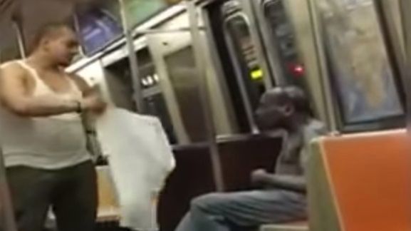 W internecie krąży filmik, na którym jadący nowojorskim metrem mężczyzna wręcza półnagiemu współpasażerowi własną koszulkę i czapkę.