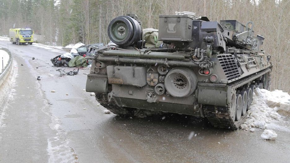 Maszyna, która brała udział w zdarzeniu, waży 50-60 ton. Należy do batalionu Telemark z Północnej brygady i jest wozem zabezpieczenia technicznego. W ćwiczeniach NATO w Norwegii pod kryptonimem "Cold Response" bierze udział około 15,000 żołnierzy z 14 krajów.