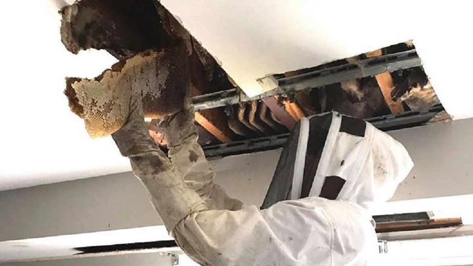 Z powodu pszczół wylatujących z wentylacji, do mieszkania w Richmond przyjechali pracownicy specjalistycznej firmy. W suficie w salonie znaleziono ogromne gniazdo pszczół.