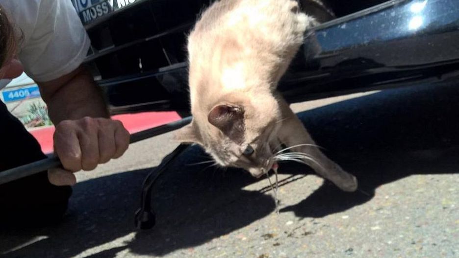 Jeden z przejeżdżających kierowców dał sygnał, że z przodu auta dzieje się coś niepokojącego. Kobieta zatrzymała pojazd, wezwano pomoc weterynaryjną i podjęto próbę wyciągnięcia zwierzaka. Po zbadaniu nieszczęśnika okazało się, że nic mu nie dolega. Tak więc nie bez powodu mówi się, że kot zawsze spada na cztery łapy.