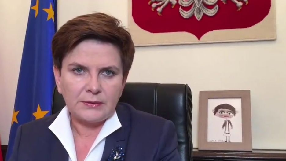 W nowym podcaście z KPRM znalazła się zapowiedź wyjazdu na szczyt Rady Unii Europejskiej do Brukseli. Może z tego powodu w tle, obok polskiej, widnieje flaga Unii. Są też zapewnienia premier, że ojczyzna nie zostawi porwanych marynarzy w potrzebie. Poza informacją o konieczności pomocy uchodźcom, Beata Szydło zapowiedziała wizytę w Paryżu i dyskusję o sprawach klimatycznych. Wzrok każdego przysłuchującego się zapewne uciekał na lewo, w kierunku dziecięcego obrazka w ramce.