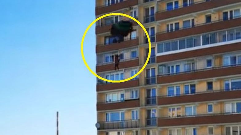 Śmiałkowie, którzy postanowili skoczyć ze spadochronami z 20. piętra jednego z warszawskich bloków, mogą mieć teraz kłopoty. Sprawę bada policja i prokuratura.