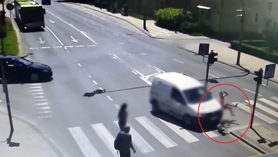 Policja opublikowała przerażające nagranie z wypadku w Olsztynie. Kobieta i jej 5-letni syn zostali potrąceni przez samochód, który wjechał na skrzyżowanie na czerwonym świetle.