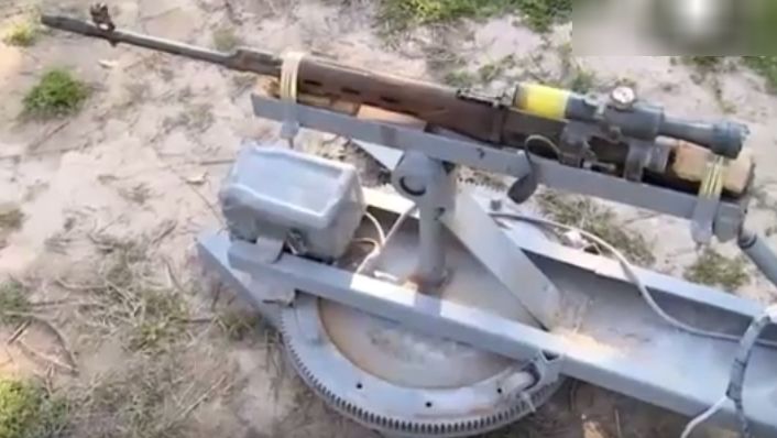 Radziecki samopotarzalny karabin wyborowy SWD osadzono na ruchomej platformie. Do broni podłączono kamerę oraz przewody dające pełną zdalną kontrolę nad bronią. Bojownik tzw. Państwa Islamskiego znajdował się daleko od miejsca, z którego padały strzały.