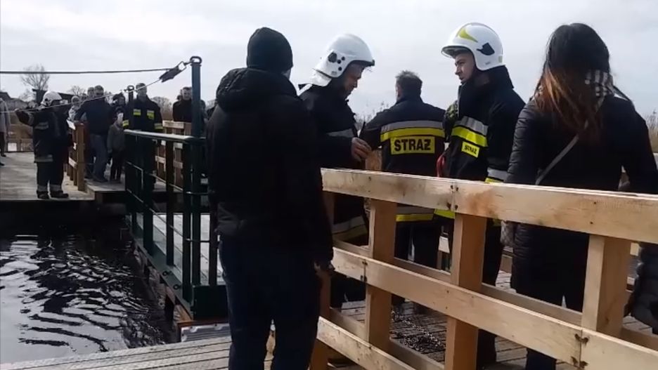 Na kładce Śliwno-Waniewo w woj. podlaskim doszło do wypadku. Platforma wywróciła się, a znajdujące się na niej osoby wpadły do rzeki.