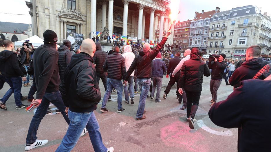 Mieli oni wykrzykiwać hasła wymierzone w muzułmanów i rzucać racami Prawdopodobnie były to osoby z tzw. skrajnej prawicy, chociaż jeden z uczestników w rozmowie z dziennikarzem TVN24 zaprzeczył temu doniesieniu. Miał powiedzieć, że jest zwykłym Belgiem, który wyraża swoje zdanie.