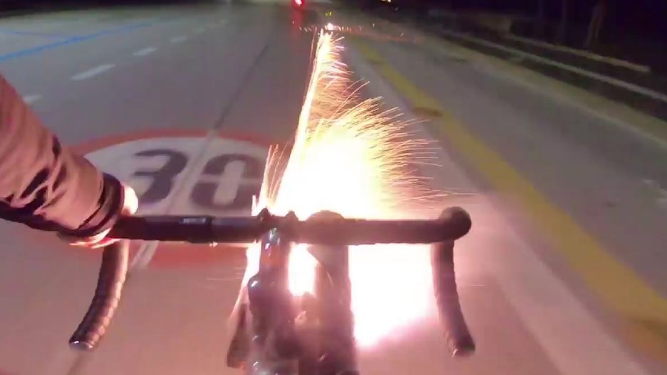 Wideo zaczyna się od zajechania drogi i steku przekleństw. Potem rowerzysta wyciąga rakiety z tuby przyklejonej do ramy i jedną po drugiej odpala z pomocą małego palnika gazowego. Ognie sztuczne eksplodują kolorowymi iskrami. Za którymś razem tuż wokół kierowcy skutera i jego pasażera. Na końcu cyklista odpala rzymskie ognie. Pod mocnym ostrzałem człowiek na skuterze kładzie swój jednoślad i obaj z pasażerem uciekają. Płonące pociski uderzają ich w plecy. Nagranie urywa się wraz z wyczerpaniem arsenału.
