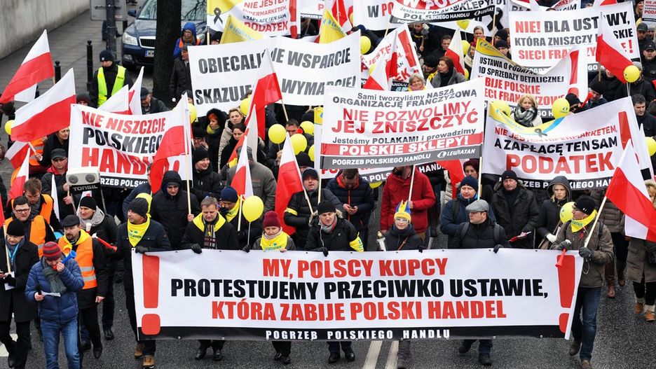 Handlowcy byli niezadowoleni z przygotowanej przez Ministerstwo Finansów ustawy o podatku od marketów. Właściciele małych i średnich sklepów zrzeszeni w sieci Lewiatan domagali się wyłączenia zapisów o franczyzie, naliczania i pobierania podatku od przedsiębiorstw według NIP-u, a także zastosowania stawki podatku nie wyższej niż 0,3 proc. dla tych przedsiębiorstw, których obroty nie przekraczają 50 milionów euro rocznie.