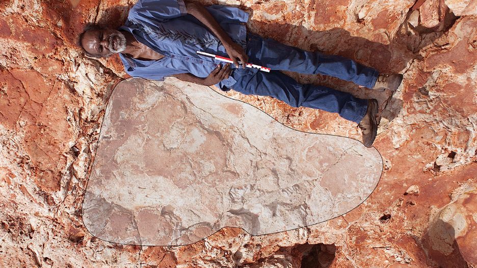 Ślady są tak duże, że może się wzdłuż nich położyć dorosły mężczyzna. Odciśnięte w piaskowcu nad brzegiem oceanu na wyżynie Kimberley w Zachodniej Australii. Zostawił je tam 130 milionów lat temu jakiś roślinożerny dinozaur, nieznany olbrzym-diplodok.