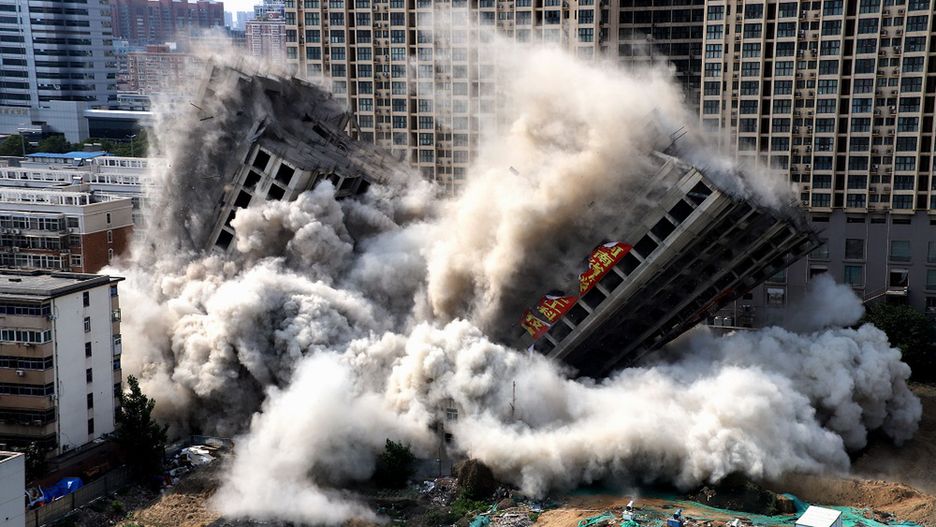 Dwa 20-piętrowe bloki zbudowane w Zhengzhou za pieniądze mieszkańców sąsiedniej wioski zostały uznane za "nielegalne". Powstawały ponad cztery lata, ale z pomocą dynamitu udało się je wyburzyć w zaledwie 15 sekund.