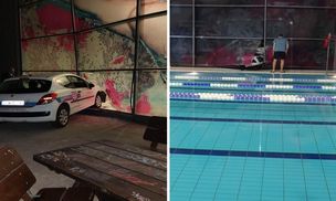 Samochód przebił szklaną ścianę i prawie wjechał do basenu. 28-latka chciała przeparkować