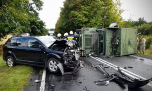 Zderzenie auta z pojazdem wojsk amerykańskich. Ranne małe dzieci