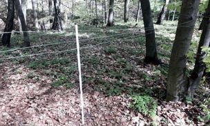 Rozciągnięte stalowe linki w lesie. Uważaj, to niebezpieczne pułapki