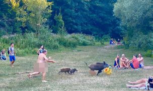 Zdjęcie jest hitem sieci. Dzik zakradł się do bagażu nudysty