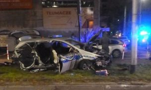 Częstochowa. Tyle zostało z radiowozu. Sprawca uciekł z miejsca wypadku