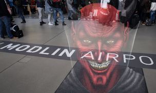 Hakerzy zaatakowali stronę lotniska w Modlinie. Witał uśmiechnięty diabeł