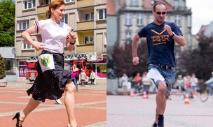 Biegali po Bytomiu w szpilkach. Panowie dopisali