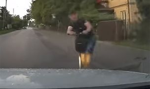 Kompletnie pijany wjechał na hulajnodze pod samochód. Nagranie z Mazowsza