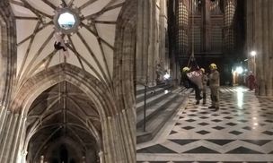 Dzwonnik zaplątał się w liny. Ratowali go strażacy