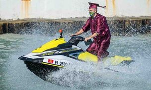 USA. Absolwenci liceum odebrali dyplomy na skuterach wodnych