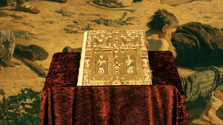 Księgi nie będzie można pomylić z niczym innym na półce. Nie ma tu wątpliwości. Oprawa Pisma Świętego została uszlachetniona 24-karatowym złotem i kamieniami jubilerskimi.