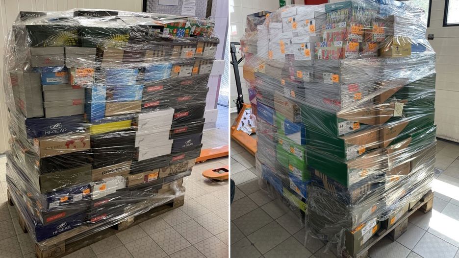 Palety z fabrycznie nowymi butami znajdują się w sklepie przy ul. Marii Skłodowskiej Curie 26 w Bydgoszczy. Na licytacje, razem z wyposażeniem sklepu, wystawia je olsztyński komornik Michał Krokowski.