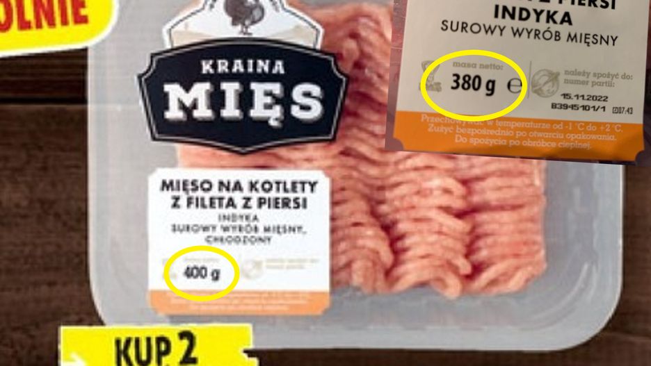 Coraz więcej producentów artykułów spożywczych i kosmetycznych zmniejsza gramaturę swoich produktów, by sprzedawać je po starej cenie. Bywa i tak, że opakowanie jest zmniejszone, a cena i tak wyższa. Tym razem jeden z internautów zwrócił uwagę na pomniejszoną gramaturę opakowania z mięsem mielonym z indyka.