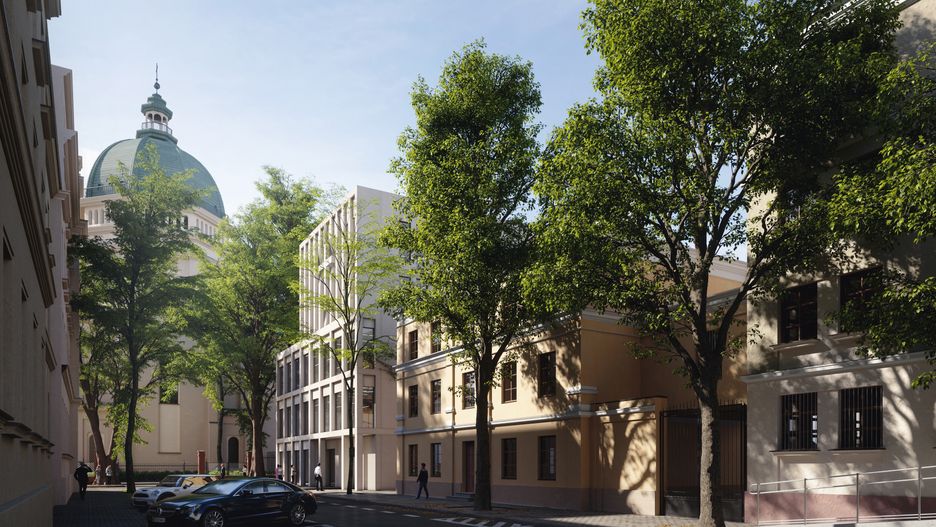 Nowoczesny dom parafialny będzie mieć pięć kondygnacji nadziemnych i dwie podziemne. Obecny dom parafialny ma trzy kondygnacje nadziemne i jedną podziemną.