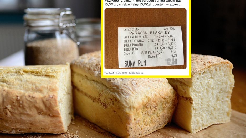 Mąż wrócił z piekarni. Oto paragon: chleb włoski 1 kg - 15,00 zł, chleb witalny - 10,00 zł. Jestem w szoku - napisała pani Maria na Twitterze.