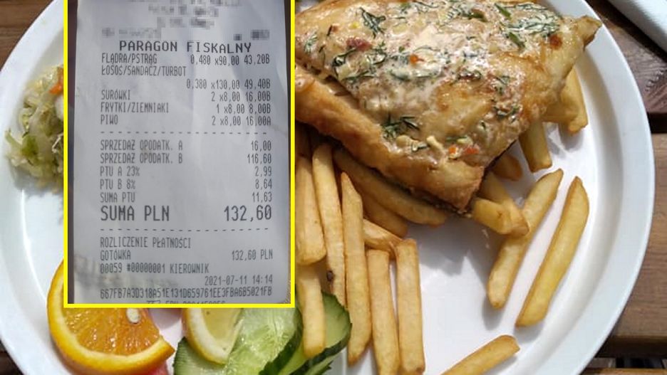 Paragon z nadbałtyckiego baru. Za rybę jak za zboże, 130 zł za kilogram!