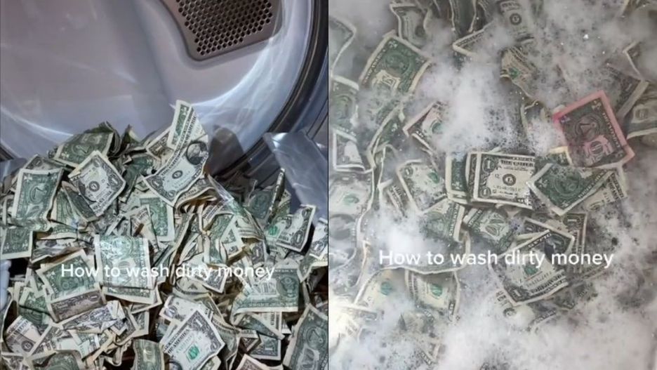 Na TikToku i platformie YouTube pojawia się coraz więcej tego typu klipów. Ich autorzy wypełniają wannę dolarami, zalewają je gorącą wodą, wlewają płyn do mycia naczyń i "piorą" banknoty. Jakby tego było mało, mokre dolary trafiają do automatycznej suszarki. O co chodzi?