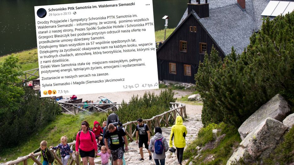 Drodzy Przyjaciele i Sympatycy Schroniska PTTK Samotnia im. Waldemara Siemaszki - informujemy, że wczoraj, pomimo wszelkich starań z naszej strony, Prezes Spółki Sudeckie Hotele i Schroniska PTTK Grzegorz Błaszczyk bez podania przyczyn odrzucił naszą ofertę na przedłużenie umowy dzierżawy Samotni - przekazały we wpisie.