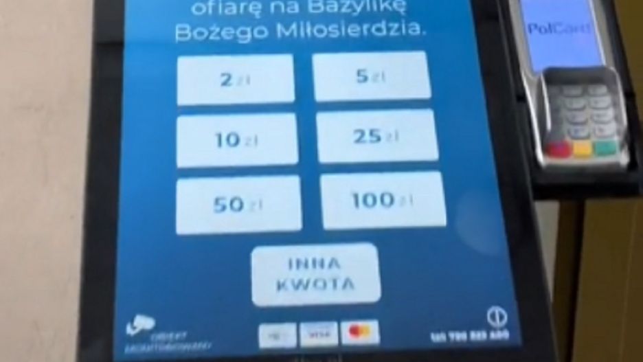 Jedne z ofiaromatów zobaczyliśmy w Krakowie, dzięki krótkiemu nagraniu na TikTitoku. "Tu złożysz ofiarę na Bazylikę Miłosierdzia Świętego" - czytamy na ekranie. Do wyboru mamy wpłatę 2 zł, 5, zł, 10 zł, 25 zł, 50 zł, 100 zł lub inną dowolną kwotę.
