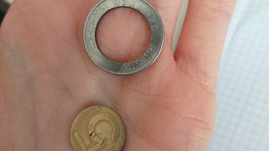 "Rozwaliłam 5 zł" - pisze internautka i pokazuje zdjęcie monety z wyjętym środkiem. Nie wiadomo, czy "piątka" została zniszczona celowo, czy przypadkiem. Internautka twierdzi jednak, że "środek wchodzi normalnie i jest jak nowa", więc nie będzie jej wymieniać.